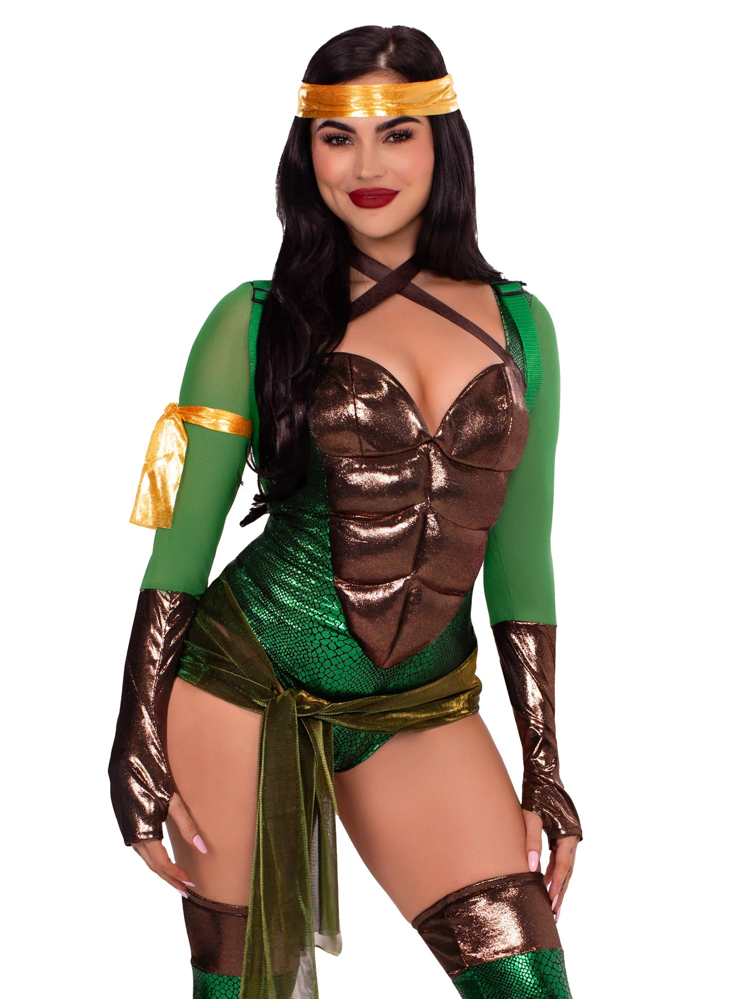 Traje inspirado en las Tortugas Ninja, con cintas de colores intercambiables para que elijas tu tortuga favorita.